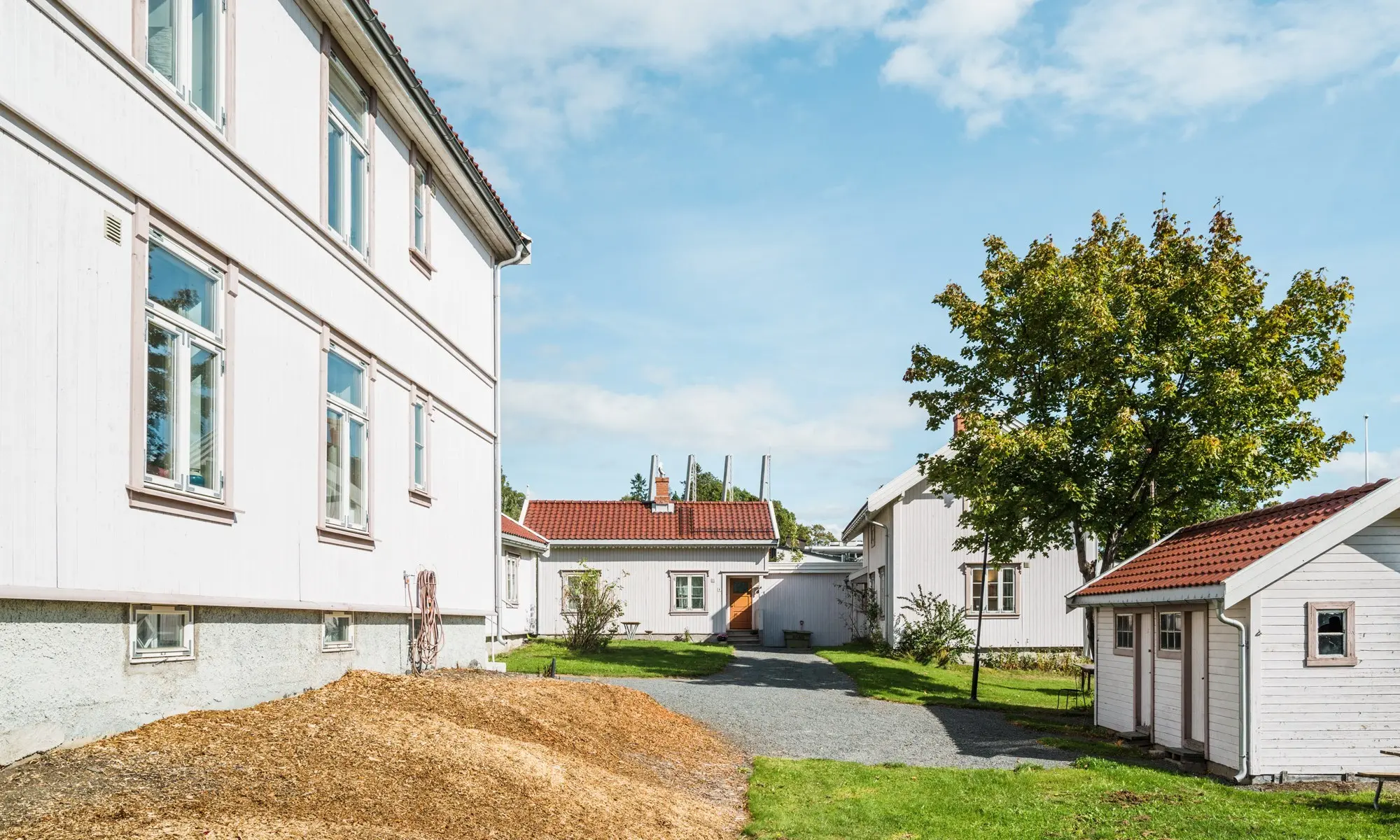 Gamle Drammensvei er en del av Kongeveien mellom Oslo og Kongsberg fra 1665, og eiendommen ble utskilt i 1868. I 1917 kjøpte Mustad den for å skaffe boliger til funksjonærer ved bedriften på Lilleaker, og boliganlegget ble benyttet som funksjonær- og arbeiderboliger helt frem til 2004. Eiendommen ble rehabilitert i 2004/2005 og har siden vært vanlige utleieboliger.