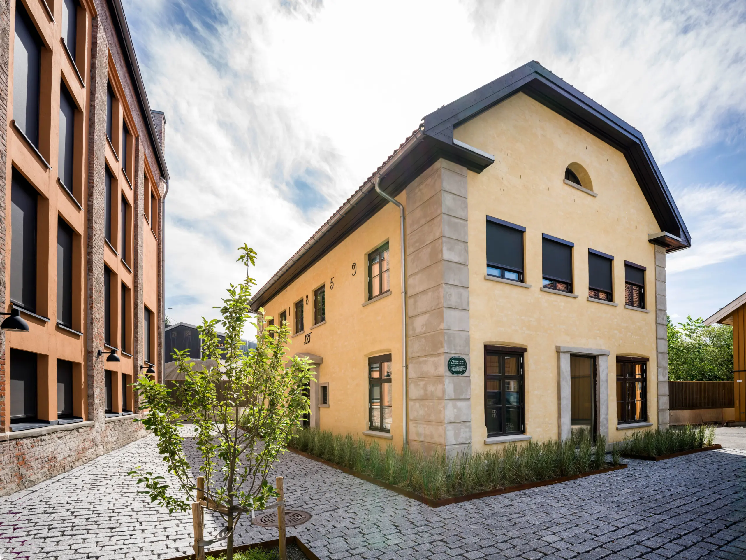 Bygget befinner seg i knutepunktet mellom by og natur med Lysaker stasjon kun et steinkast unna og Lysakerelva som nærmeste nabo.