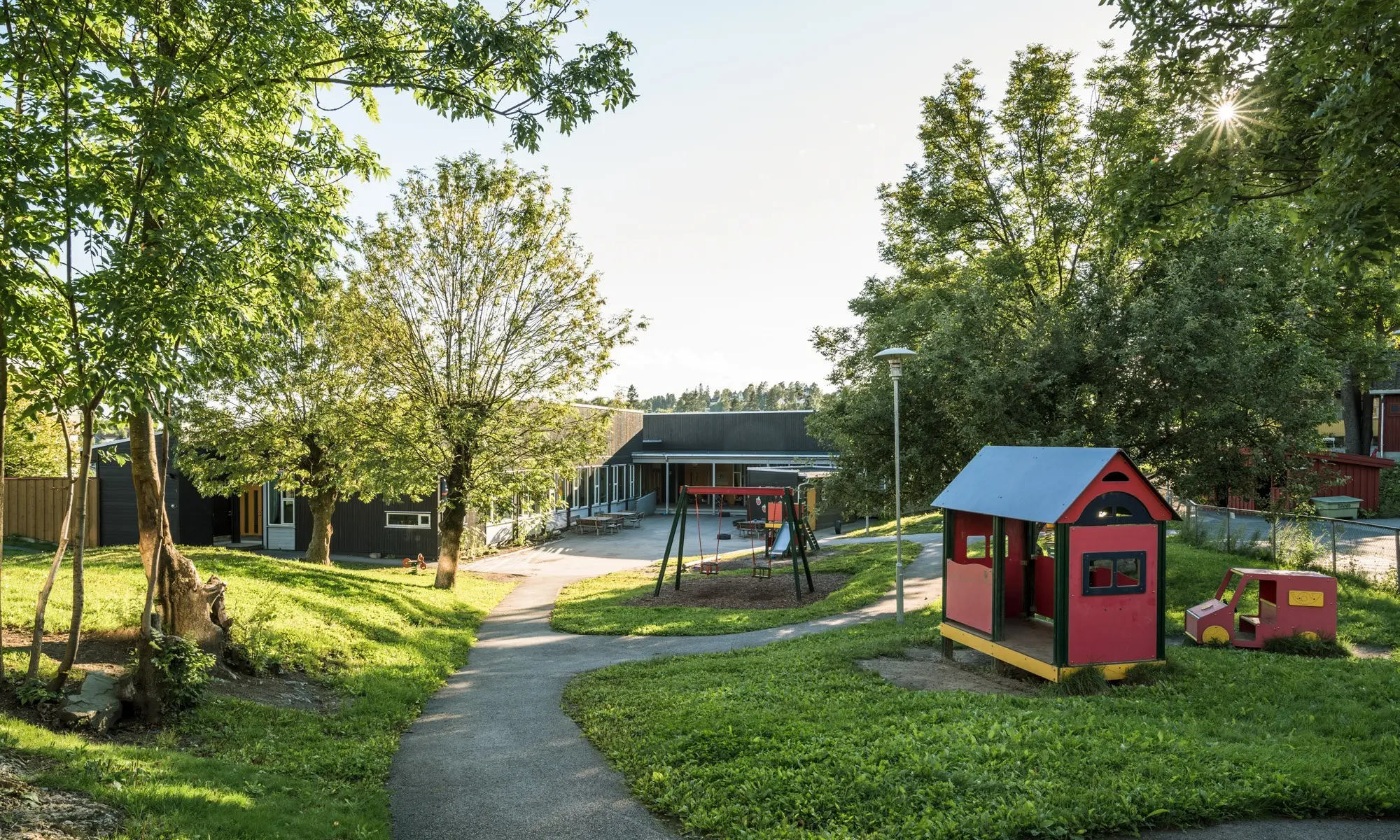 Barnehagen ligger på oversiden av CC Vest, godt skjermet og ut mot et gammelt bomiljø, med offentlig kommunikasjon i umiddelbar nærhet. Lokalene er lyse med store fellesrom og en flott utelekeplass, pluss at det er fine turområder i nærmiljøet, som Lysakerelven og Sollerudstranda.