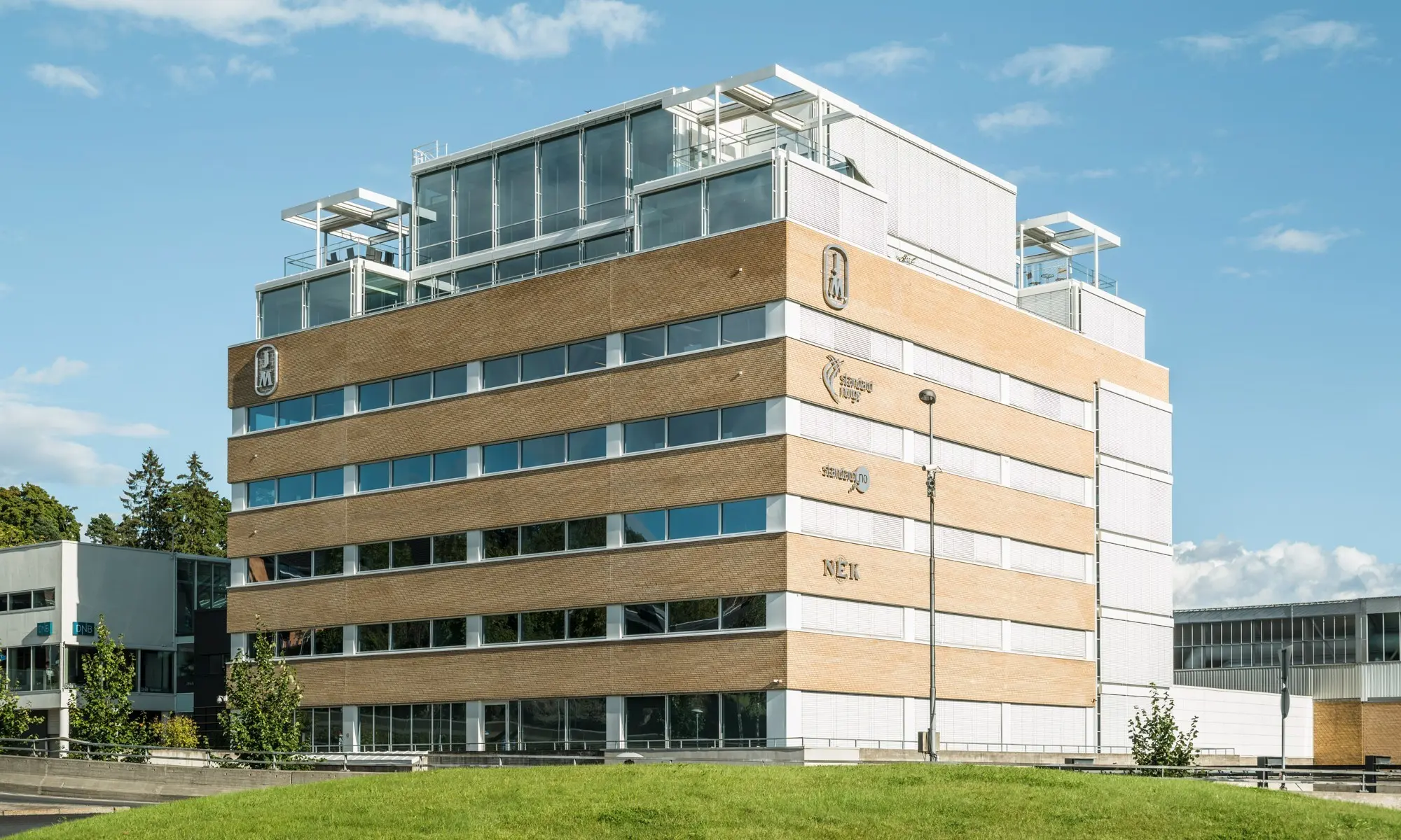 Arkitektonisk har Mustads vei 1 opprettholdt hovedformen og materialbruk er videreført, men påbygningen av 6. og 7. etasje er utformet i glass og metallprofiler. I dag fremstår eiendommen som et fremtidsrettet og miljøvennlig bygg med energimerke grønn B og ligger meget sentralt til i forhold til kollektivtransport og kjøpesenteret CC Vest. I bygget finnes kantine med hyggelig uteplass, felles møterom og flotte garderober med tørkerom og sykkelparkering.