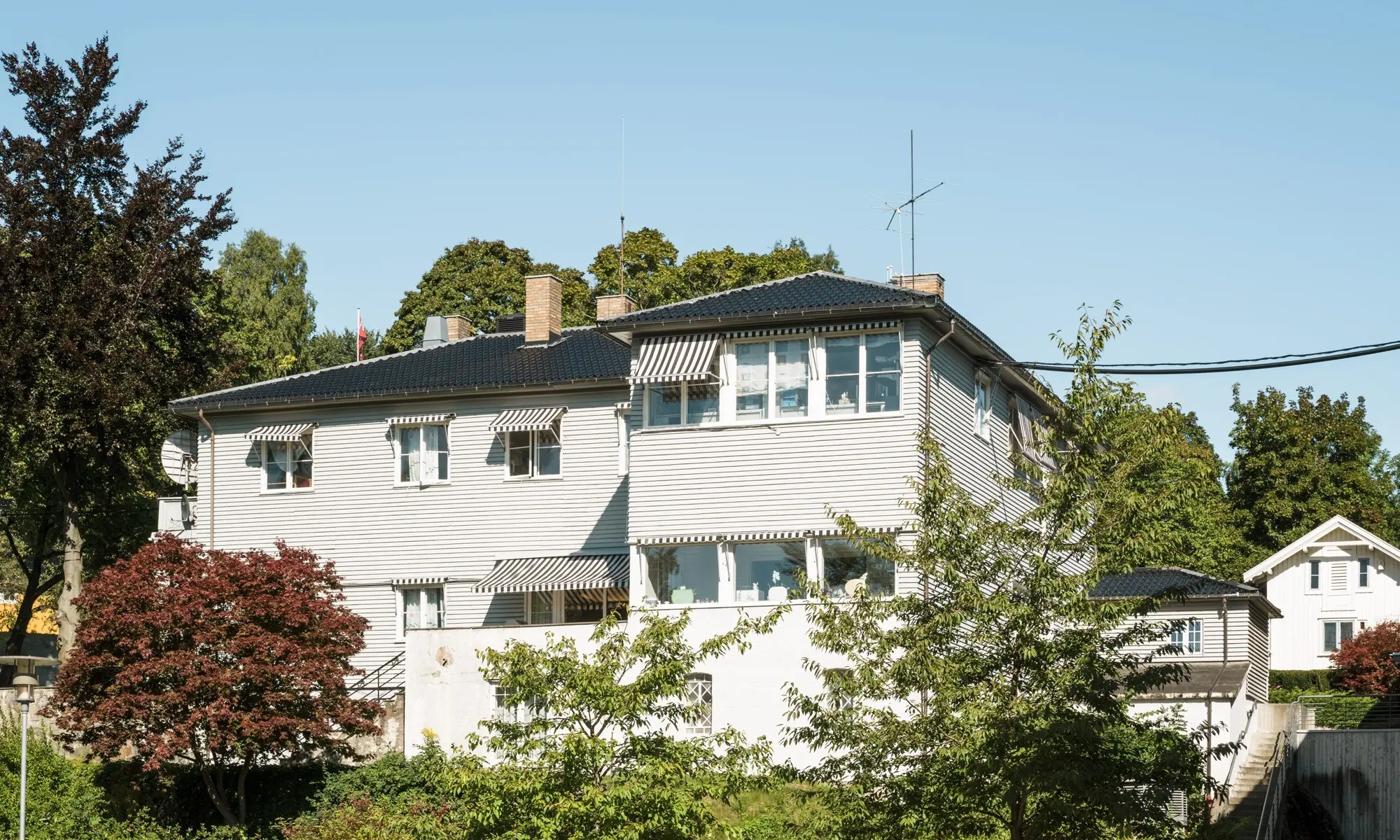 Huset ble opprinnelig oppført i sveitserstil på slutten av 1880-tallet og senere bygd om til funkisstil på 1950-tallet.